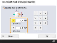 Määrake <X>-külje ja <Y>-külje pikkus. Vajutage nuppu <X> või <Y> ja sisestage numbriklahvide abil vastava külje pikkus.
