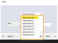 Teavet aadressiraamatusse salvestatud sihtkohtade teabe muutmise või kustutamise kohta lugege teemast Aadressiraamatusse salvestatud sihtkohtade muutmine.
