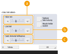 Kinnitusheli kõlab iga kord, kui vajutate juhtpaneelil klahvi või puuteekraani nuppu