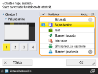 Saate luua otsetee nupu funktsioonidele kuval <Avakuva>. Kasutage seda nupu erineva funktsiooni juurde pääsemiseks ilma kuvale <Avakuva> naasmiseta. Otsetee loomiseks peate administraatori õigustega sisse logima.