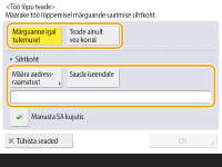 Selleks, et teavituse sihtkohta saaks valida kohast <Aadressraamat>, tuleb see sihtkoht eelnevalt registreerida. Sihtkohtade salvestamine aadressiraamatusse