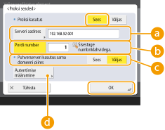 Määrake sätte <Proksi kasutus> olekuks <Sees>, tehke vajalikud määrangud ja vajutage <OK>.