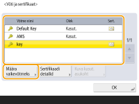 Kui soovite kasutada sertimiskeskuse (CA) loodud võtit ja sertifikaati, peate võtme ja sertifikaadi registreerima enne allkirjeldatud toimingute tegemist. Võtme ja serdi registreerimine