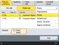 <Tööde logi> <Prindi loend>. |