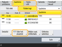 Te ei saa kommunikatsioonihaldusaruande sätteid konfigureerida, kui menüü <Tööde logi kuvamine> seadeks <Haldusseaded> on <Väljas>. Lisaks, kui muudate jaotises <Tööde logi kuvamine> jaotises <Haldusseaded> väärtusest <Väljas> väärtuseks <Sees>, <Print./saat. pärast määratud arvu edastusi> ja <Printimine/saatmine määratud ajal> muutub juhtimisaruanne automaatselt väärtuseks <Väljas>. <Tööde logi kuvamine>