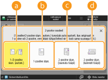 Kui soovite skannida skaneerimisklaasile asetatud 2-poolse originaali mõlemad pooled, määrake seaded valikus <Töö koostamine>. Eraldi skannitud dokumentide üheaegne saatmine/salvestamine (Töö koostamine)