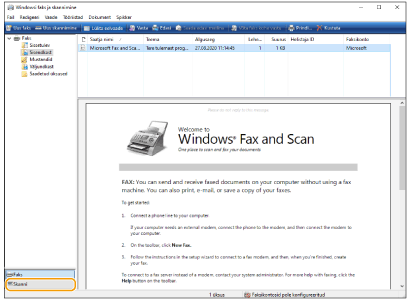 Kui skannimine on lõpule viidud, kuvatakse skannitud dokument failide loendis kuvas [Windowsi faks ja skannimine] ning salvestatakse kausta [Skannitud dokumendid] kaustas [Dokumendid].