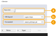 Kui kasutate protokolle SNMPv1 ja SNMPv3 koos, on soovitatav valida protokolli SNMPv1 MIB juurdepääsuõiguste jaoks <Ainult lugemine>. Kui valite <Lugemine/kirjutamine>, muutuvad peaaegu kõik seadme tööfunktsioonid kasutatavaks ja SNMPv3 tugevad turbefunktsioonid ei toimi tõhusalt. MIB juurdepääsuõigused saab määrata SNMPv1 või SNMPv3 protokollis. SNMPv3 puhul saab need määrata iga kasutaja jaoks.
