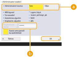 Sisestage autentimiseks kasutatav parool. Kui sisestate parooli, kuvab kinnituseks <Kinnita>. Sisestage salasõna veel üks kord.