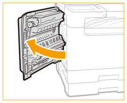 Asetage käsi põhiseadme vasakpoolse kaane juures oleva käesümboli juurde ning sulgege ettevaatlikult vasakpoolne põhiseadme kaas, kuni see klõpsatab oma kohale (suletud asendis).