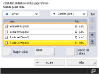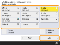 ; botoi horrekin gutun-azalaren paper mota erregistratu egin da <Ados>. Sarritan erabilitako paper-tamaina eta mota erregistratzea helburu anitzeko erretiluarentzako |