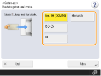 Ezin da hautatu gutun-azal paper-mota <Paper mota>-ren xehetasun-pantailan. Gutun-azal paper mota hautatzeko, erregistratu paper mota <Gorde gogoko papera (erabilera anitzeko erretilua)> aukeran, sakatu <Gogoko papera>, 2. pausoan