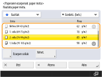 Kargatu duzun paper mota ez badago ezarpen xehatuen pantailan zerrendatuta, erregistratu egin dezakezu paper motaren zerrendan.