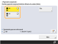 <Paperaren ezarpenak> <Paperaren ezarpenak> pantaila bistaratzeko.