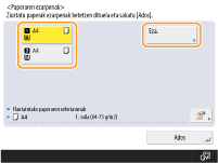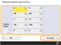 Bistaratutako paper-tamaina/mota ez badator bat kargatutako paper-tamaina/motarekin, hautatu papera kargatuta dagoen paper-iturria eta sakatu <Eza.>.