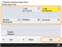 Hautatu paper mota eta sakatu <Ados>.