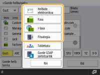 LDAP zerbitzaria dagoeneko erregistratu bada makinan (LDAP zerbitzaria erregistratzea), bilatu egin ditzakezu helmugak eta horiek erregistra ditzakezu helbide-liburuan. Sakatu <Helb./Birbid. ezarpenak>