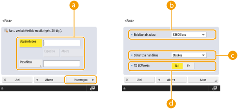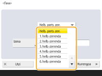 <Helbide-liburua> Faxaren oinarrizko eginbideen pantailan