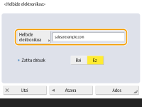 Zehaztu I-faxak bidaltzea edo ez helmugetara posta elektronikoaren zerbitzariaren bidez. Hautatu <Bai> posta elektronikoaren zerbitzariaren bidez bidali nahi badituzu I-faxak. Hautatu <Ez> zuzenean bidali nahi badizkiozu datuak sare lokaleko hartzaileari. Zuzenean hartzaileari bidaliz, datu-kopuru handiagoa bidal dezakezu posta elektronikoaren zerbitzarian zamarik jarri gabe.