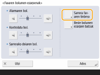 Makina lo moduan sartzean egiten duen soinua, edo makina desaktibatuta dagoenean egiten duenean <Elikadura nagusiaren has. azkarraren ezarp.> ezartzen baduzu <Bai>-rako. (Egoeren arabera, makina ez da azkar abiatuko eta seinalean ez du soinua egingo.)
