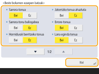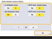 Nahiz eta <Ez> ezarrita egon sarrerako tonurako, sarrerako tonua entzungo da lo modua dagoen bitartean faxa iritsiz gero lo moduan kontsumo baxua ezarrita badago. <Lo moduaren energia-erabilera>