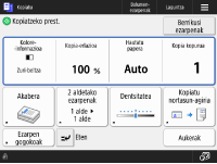 Aldatu egin ditzakezu pantailari dagozkion ezarpenak; adibidez, makina PIZTU ostean berehala zein pantaila agertzen den, eta mezurik agertzen den gelditzen den paper eta tonerrari dagokionez. <Bistaratze-ezarpenak>