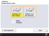 Oinarrizko kopiatze funtzioen pantailan <Aukerak>  <Lanaren konpilazioa> sakatzeak tartekatze/taldekatze funtzioak erabiltzea baimentzen dizu, nahiz eta originala beiraren gainean kokatuta egon.