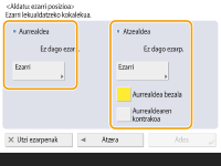 Irudia atzealdera mugitu nahi baduzu bi aldeak kopiatzerakoan, <Atzealdea> ezarpena beharko da. Aurrealdeko kokapen berdinera mugitzeko, sakatu <Aurrealdea bezala>. Simetrikoki mugitzeko, sakatu <Aurrealdearen kontrakoa>. Aurrealdeko kokapen ezberdin batera mugitzeko, sakatu <Ezarri> eta sartu mugimendu-distantzia.