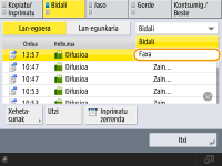 Sakatu (Gelditu) bidaltzeko hainbat lan daudenean bidaltzeko lanak bertan behera uztea hautatzeko pantaila bistaratzeko. Bertan behera utzi nahi duzun lana bidaltzea bistaratzen ez bada, sakatu <Beg. beste lan batzuk> <Bidali lanak> bistaratzeko. Hautatu ezeztatu nahi duzun lana eta sakatu <Utzi>.