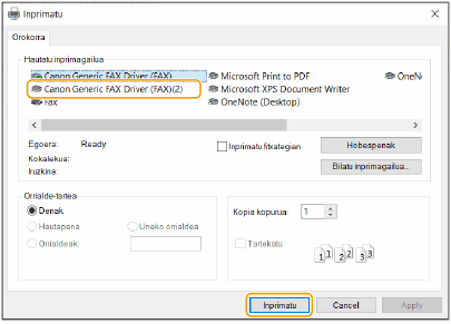 Hautatu makina eta sakatu [Inprimatu] edo [Ados].