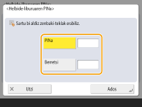 Sartu PINa eta sakatu <Berretsi>. Baieztatzeko, sartu PINa berriz eta sakatu <Ados>.