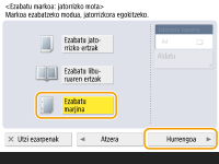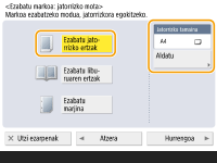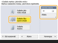 <Jatorrizko tamaina>-(e)an bistaratutako tamaina eta originalaren tamaina desberdinak badira, sakatu <Aldatu> tamaina hautatzeko. Ukipen-pantailan bistaratutako originalen tamainak eskanea daitezke soilik.