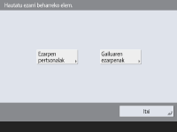 Izan daiteke ezarpen batzuk ikusgai ez egotea makinan instalatuta dagoen aukerako konfigurazioaren arabera.