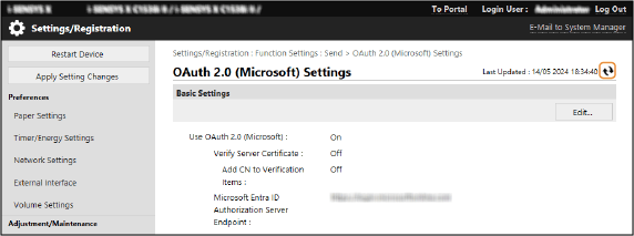 Data eta orduaren ezarpenak OAuth 2.0 autentifikazioaren ezarpenak konfiguratu ostean aldatzen badituzu, birkonfiguratu OAuth 2.0 autentifikazioaren ezarpenak.