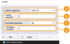 Autentifikazioaz bestelakoa den pasahitz bat erabiltzen baduzu, desautatu <Erabili autentifikazio--pasahitza>, sakatu <Enkriptatze-pasahitza>, eta sartu pasahitza.