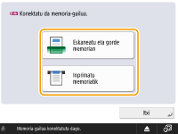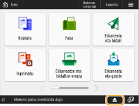 <Hautatu aukera memoria-euskarrira konektatzean>-rako <Bai> ezarrita badago, erabili daitezkeen funtzioetarako lasterbideak bistaratzen dira memoria-gailua txertatzerakoan. <Hautatu aukera memoria-euskarrira konektatzean>
