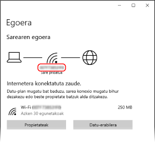 Ikusi sare-konexioaren informazioa.