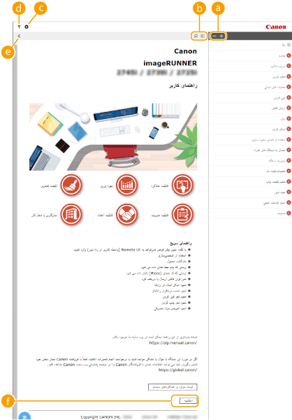 زمانی که روی نماد کلیک کنید، ممکن است صفحه فعلی تاریک شده و یک پنجره بازشو ظاهر شود. برای برگشت به صفحه، روی [بستن] در پنجره بازشو کلیک کنید.