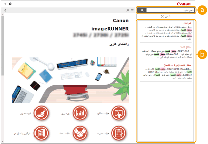 با کلیک کردن می توانید میان فهرست مطالب و صفحه جستجو جابجا شوید. زمانی که فهرست مطالب نشان داده شود، هر کلیکی روی
