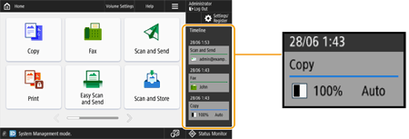 اگر <Manage Address Book Access Numbers> روی <On> تنظیم شود، گزارش ارسال کار ("Fax" و "Scan and Send") مربوط به کاربران احراز هویت نشده و کاربران مهمان در خط زمان نشان داده نمیشود.