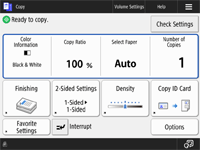 در صفحه <Home>، دکمه‌های عملکرد را برای نمایش صفحه ویژگی‌های اصلی فشار دهید؛ که آنجا می‌توانید به عملکردهای اصلی مانند کپی کردن، فاکس و اسکن دسترسی داشته باشید. اگرچه نمایشگر و موارد تنظیم در صفحه "ویژگی‌های اصلی" بسته به عملکردها متفاوت است، اما می‌توانید تنظیمات را متناسب با نیازتان تغییر دهید. سفارشی سازی صفحه ویژگی‌های اصلی
