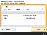 تنظیمات کپی را مشخص کنید. صفحه <Home>