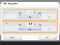 بزرگنمایی <X> را برای تنظیم پهنای افقی، و بزرگنمایی <Y> را برای تنظیم پهنای عمودی تنظیم کنید.