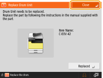 <Initialize After Replacing Parts> بروید. <Yes> را در <Drum Unit> فشار دهید. بررسی کنید که <Initialized.> نمایش داده شود و سپس <Close> را فشار دهید.