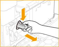 کارتریج تونر جدید را با دست از زیر نگه دارید و در همین حین آن را با دست دیگر داخل دستگاه فشار دهید.