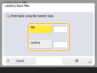 Address Book می‌تواند طوری تنظیم شود که از کاربران بخواهد برای افزودن ورودی‌های جدید به Address Book یا ویرایش ورودی‌های موجود یک پین وارد کنند. این امر می‌تواند خطر ویرایش غیرمجاز Address Book را کاهش دهد. البته توجه داشته باشید که حتی اگر یک پین برای Address Book تنظیم شده باشد، کاربری که با امتیازات سرپرست وارد سیستم می‌شود قادر است ورودی‌ها را بدون نیاز به وارد کردن پین الزامی، افزوده و ویرایش کند.