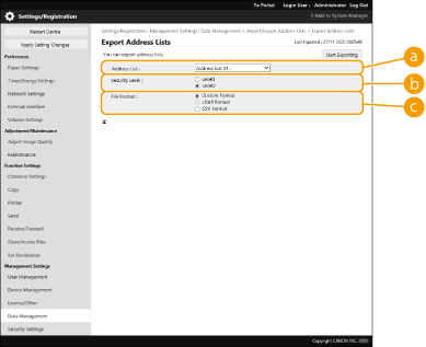 شما می‌توانید فقط لیست‌های آدرس در Address Book را وارد/صادر کنید. جهت اجرای این عملیات‌ها به امتیازات سرپرست نیاز است.