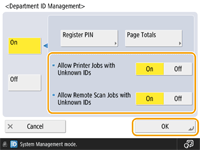 <Management Settings>‏  <User Management>‏  <Department ID Management> را فشار دهید.