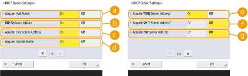 برای تنظیم نام میزبان و نام دامنه که با IPv4 یکی باشد، <On> را در <Use Same Host Name/Domain Name as IPv4> فشار دهید. برای تنظیم آنها به گونهای که متفاوت از IPv4 باشند، <Off> را فشار دهید.