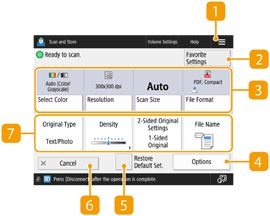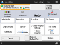 وقتی <Scan and Store> را در صفحه <خانه> فشار می دهید و سپس <Network> یا <Memory Media> را فشار می دهید تا اسناد اصلی را اسکن کنید، صفحه تنظیم زیر نمایش داده می شود.